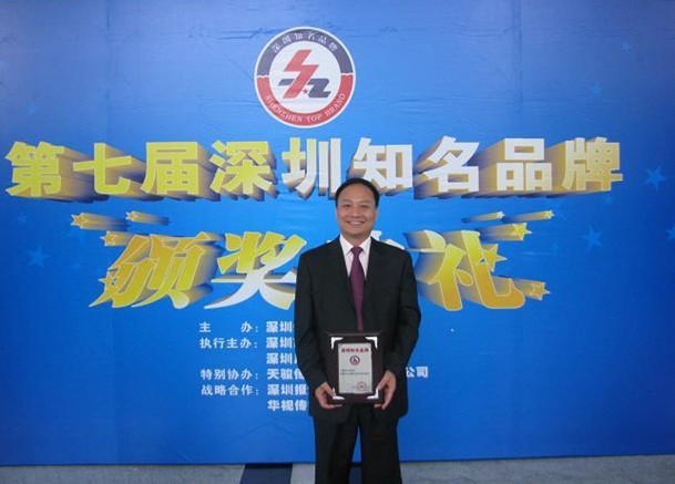 4月22日下午,由深圳知名品牌评价委员会、深圳市工业经济联合会和深圳广播电影电视集团主办的第七届 “深圳知名品牌”颁奖典礼在深圳广电集团演播厅隆重举行。市领导陈应春、李华楠、廖军文、钟晓渝,深圳知名品牌评价委员会、市工业经济联合会、各行业协会有关人士及获奖企业代表1000余人出席了颁奖典礼。我司董事长、总经理李瑞常先生代表公司出席了此次颁奖盛典,并最终捧回了“深圳知名品牌”奖牌以及“深圳知名品牌”使用授权证书。