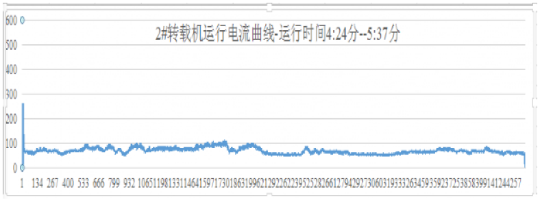 数据分析:此变频器采用最新研发的转矩板控制系统,可以更好地平衡运行电流;转载机 2#电机,最大启动尖峰电流为262A,平均运行电流为67A, 设备运行平稳满足生产要求。